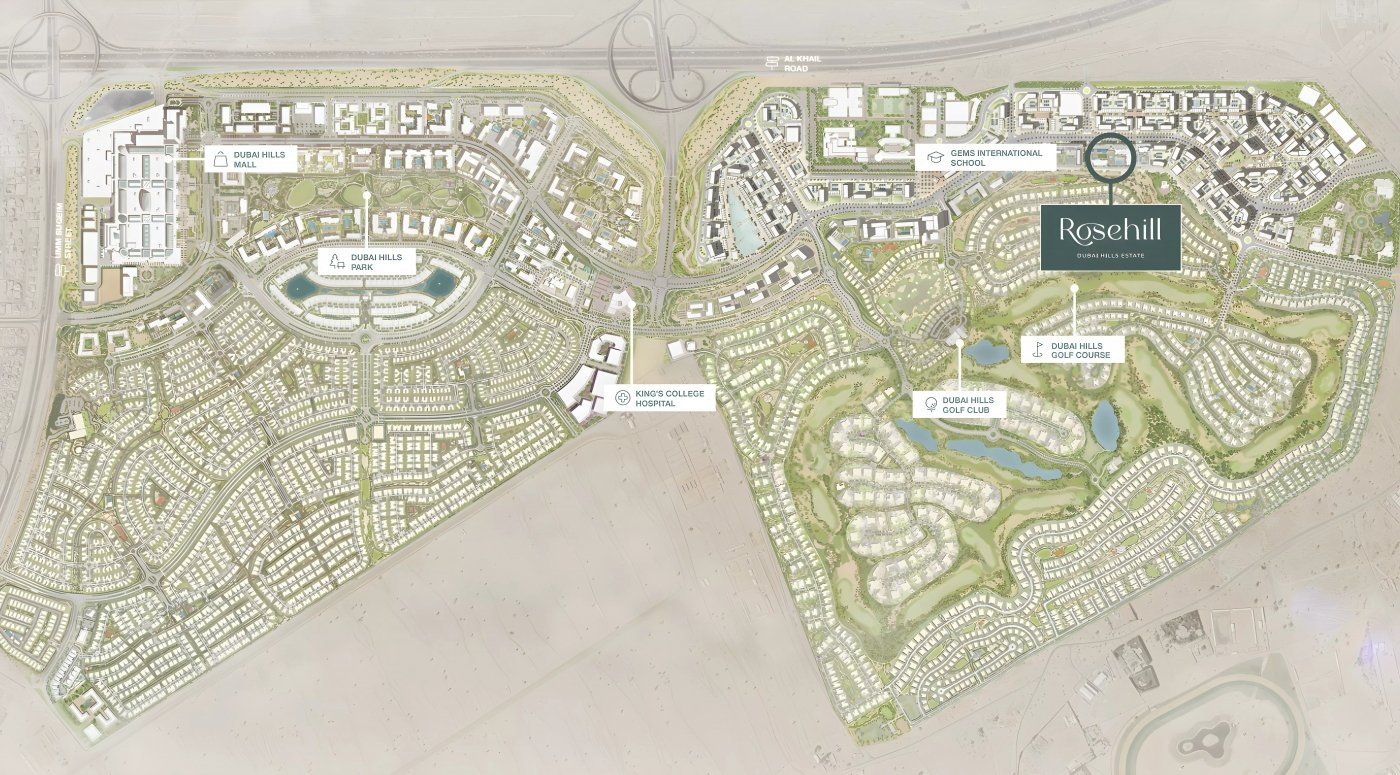 Rosehill is located in the heart of Dubai Hills Estate, one of Dubai’s most prestigious and strategically positioned master communities. This prime location offers residents seamless access to key parts of the city while enjoying a peaceful, park-filled environment.